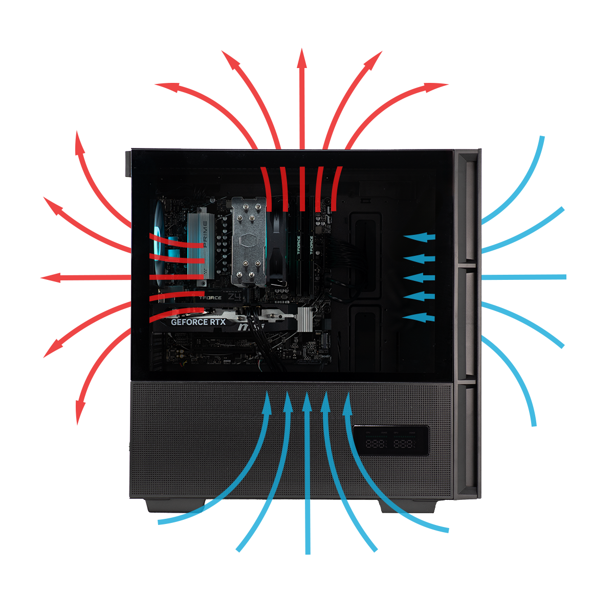 Monitor your CPU and GPU information with the integrated double status digital screen. A simple to use application will give you control of the display statuses.